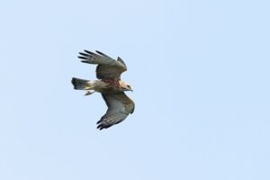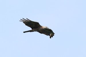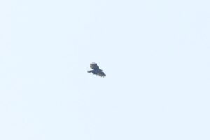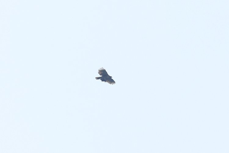 靄の中、遠~く「クマタカ」が獲物らしきものを持って・・