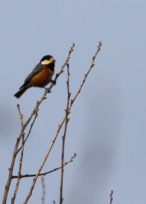 ジョウビタキが近付いて来てくれ、日向で見ていると梢でヤマガラが「ツツピーツツピー」